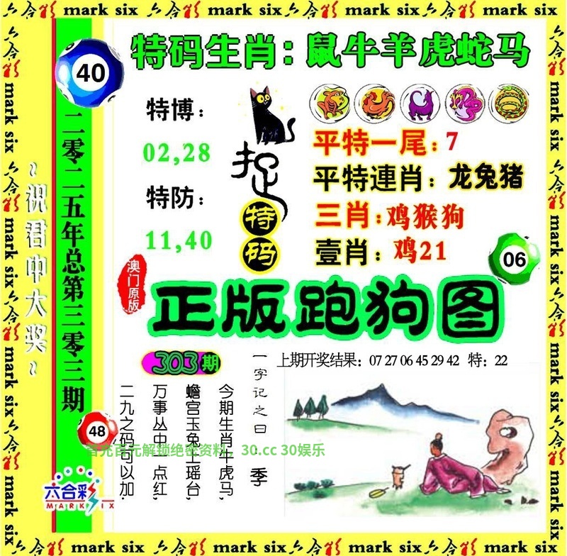 | 303期:六肖 | 羊鼠兔猪马虎 | 兔15中 |